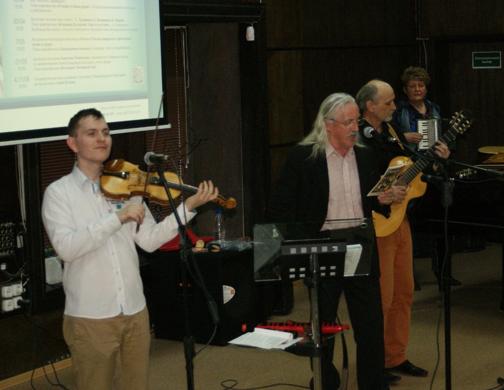 Председатель Сибирского Фонда по увековечиванию памяти Владимира Высоцкого Анатолий Олейников вручил членам ансамбля «Летучая Кошка» наши традиционные подарки – прекрасные фотоальбомы «Короткие встречи», посвящённые гастролям Владимира Высоцкого в Новокузнецке. Подарки получили и активные члены Клуба Наталья Фёдорова и Людмила Журавлёва.