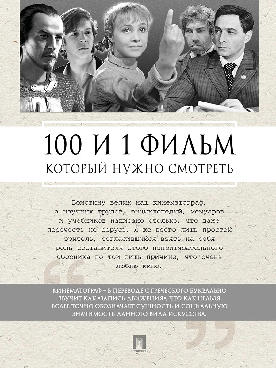 Цель этой книги - как можно скорее превратить читателя в зрителя. Чтобы на примере лучших образцов отечественного кинематографа он смог оценить блестящую игру актеров прошлых лет, а также великолепные режиссерские и операторские работы. Почувствовать дух эпохи непредвзято, где-то улыбнувшись светлой наивности, а где-то услышать эзопов язык автора сценария.